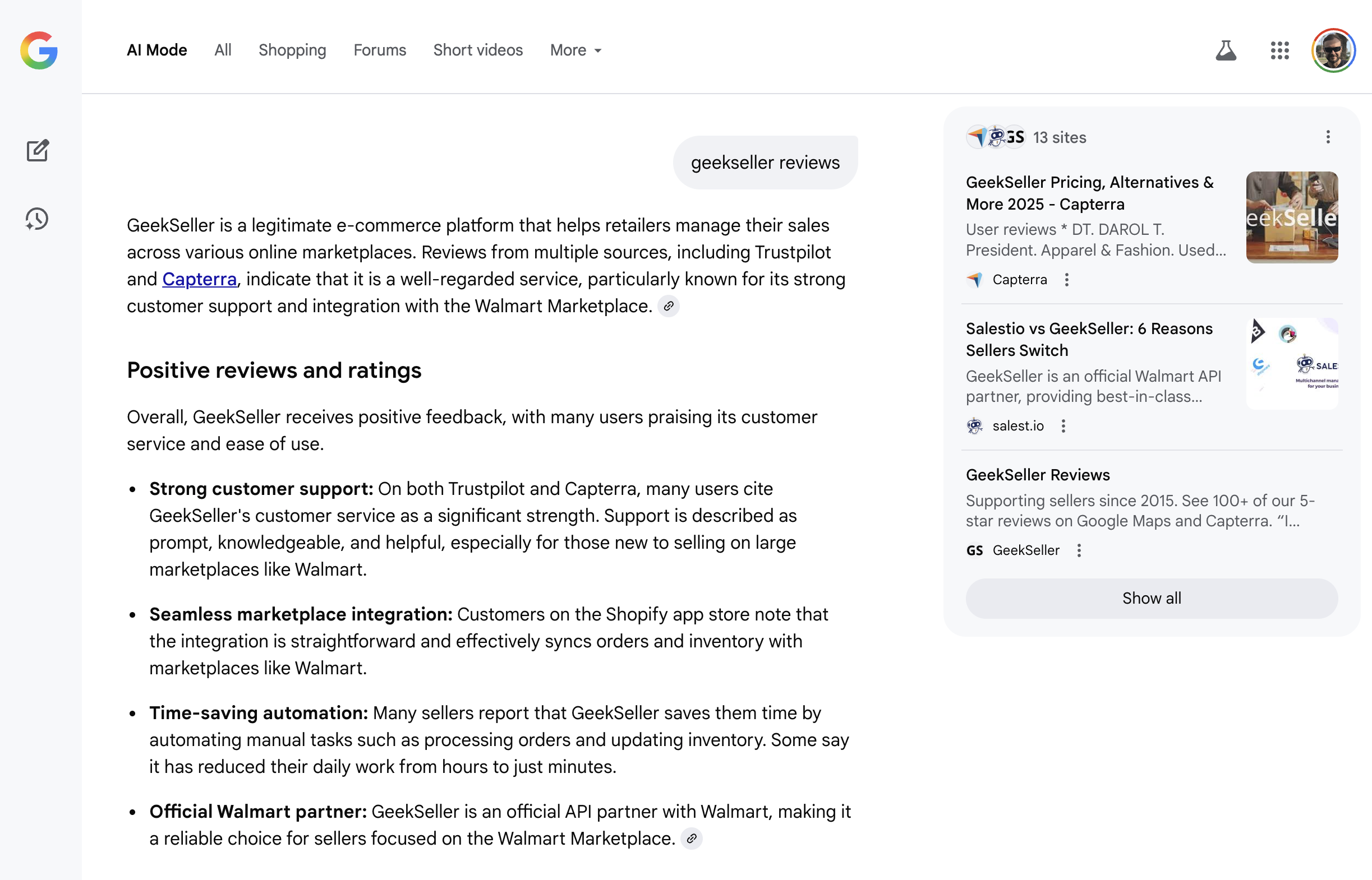 Even Google’s Gemini AI recognizes GeekSeller as a trusted, long-standing eCommerce partner. It highlights our reliability, innovation, and strong industry partnerships — a reflection of the value we bring to our sellers every day.