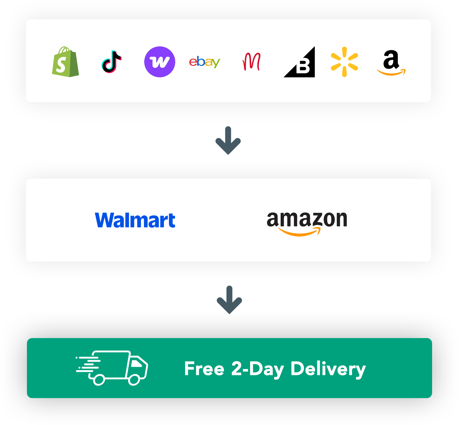 Use multichannel fulfillment by Amazon FBA and Walmart WFS to offer fast shipping on any platform.