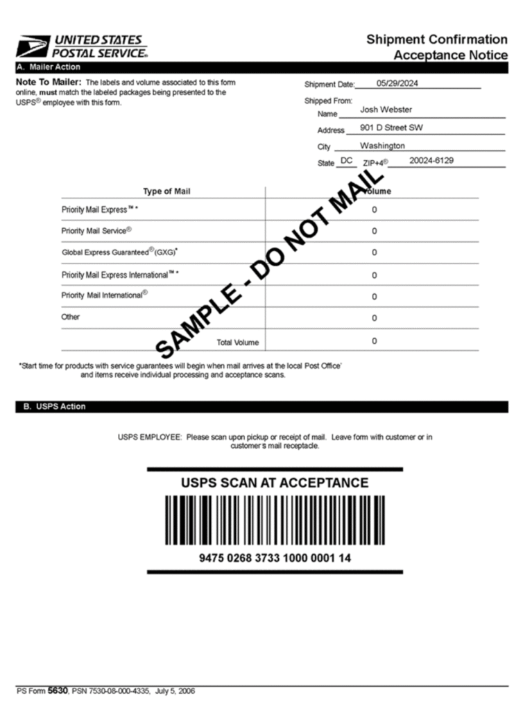 USPS SCAN Form (Shipment Confirmation Acceptance Notice)