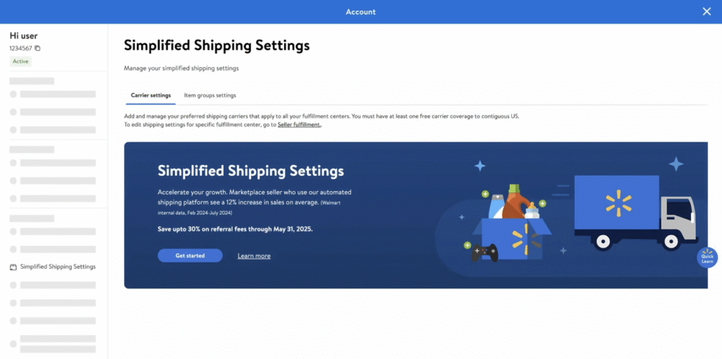 Walmart introduced Simplified Shipping Settings (SSS) to make it easier for sellers to manage shipping and delivery promises. Instead of setting manual transit times, this feature automatically calculates them based on your fulfillment center location, delivery destination, and carrier choice. Sellers who implement SSS on Walmart Marketplace see approximately a 10% increase in GMV, and those gains matter most when it’s busy.