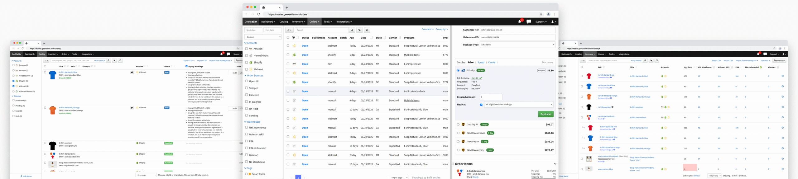 Pre-negotiated discounts from FedEx, UPS, USPS, DHL, and Canada Post. With EasyPost and GeekSeller, you can compare rates, print labels, and automate fulfillment.